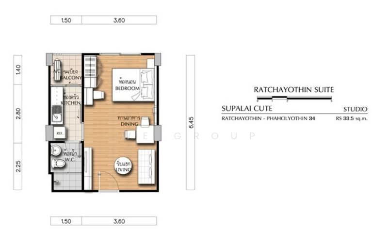 ขนาด 33.5 ตรม. ชั้น 7 อาคาร D