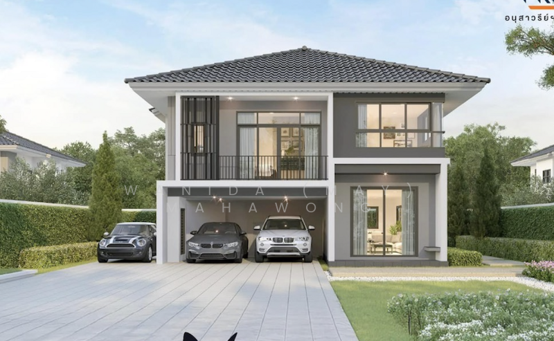 บ้านออกแบบด้วยสไตล์ร่วมสมัย เน้นความเรียบง่ายและฟังก์ชันครบครัน พร้อมสิ่งอำนวยความสะดวกในโครงการ เช่น สระว่ายน้ำ ฟิตเนส และระบบรักษาความปลอดภัยตลอด 24 ชั่วโมง