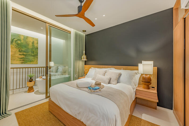 Surfhouse Residences, Phuket Bang Tao Nestled in the idyllic setting of Choeng Thale, Thalang, Phuket, Surfhouse Residences offers an unparalleled living experience in a modern condo development. This multi-story building features contemporary architecture with balconies that overlook lush greenery and an inviting outdoor swimming pool. With a focus on natural surroundings, residents enjoy expansive green spaces and serene outdoor seating areas. Luxurious Amenities The outdoor pool area is complemented by sun loungers and palm trees, creating a resort-like atmosphere right at your doorstep. Inside, spacious and well-lit living rooms are adorned with modern furniture, elegant ceiling fans, and large windows that flood the space with natural light. This open floor plan seamlessly integrates the beauty of the outdoor scenery. Comfortable and Stylish Interiors The dining room boasts a wooden table with cushioned seats, ambient lighting, and a wood-paneled wall, making it perfect for entertaining. The modern gym is equipped with treadmills, exercise bikes, weightlifting equipment, and large mirrors, ensuring a comprehensive fitness experience. Ideal Location Situated in the tranquil area of Bang Tao, residents can find peace and relaxation amidst the well-maintained gardens and landscaped surroundings. Surfhouse Residences is more than just a home; it's a lifestyle choice that combines comfort, luxury, and nature.