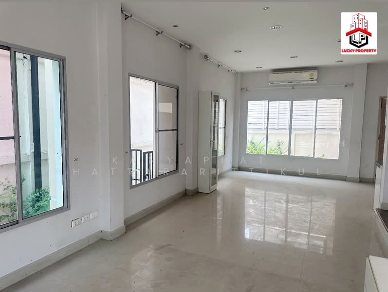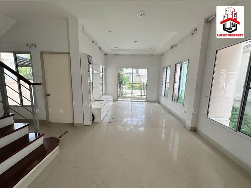 บ้านอยู่ซอย6 อยู่สุดซอยหลังริม เป็นบ้านเปล่า ไม่มีเฟอร์นิเจอร์ ห้องนอนใหญ่มีบิวท์อินตู้เสื้อผ้า ชั้นล่างมีบิวท์อินครัว และมีแอร์ 4 เครื่อง ภายในโครงการร่มรื่นสวยงาม และสิ่งอำนวยความสะดวกภายในโครงการ มี คลับเฮ้าส์ ฟิตเนส สระว่ายน้ำ สนามเด็กเล่น สวนสาธารณะระบบ Key Card Access / CCTV รักษาความปลอดภัย 24 ชม.