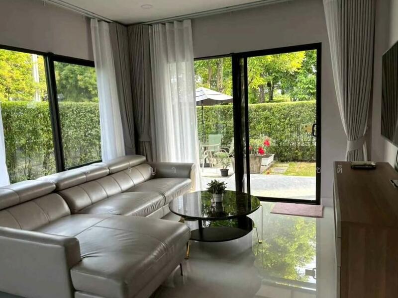 หลังมุมติดถนนเมนโครงการ ใกล้สวนและส่วนกลาง บ้านเช่าตกแต่งพร้อมอยู่