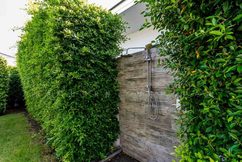 The landscaped garden, covered furnished patio, an outside 12 sqm Thai/BBQ kitchen and a 5x12 meter infinity swimming pool provides a wonderful relaxation area.