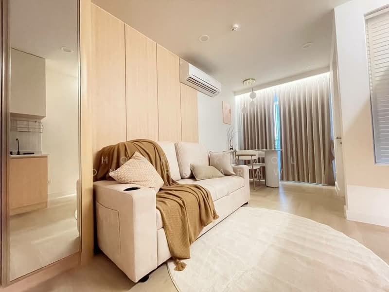This 35 sqm freehold condo in The Clover Thonglor offers a bright 1 bedroom, 1 bathroom layout on the 4th floor in Khlong Tan Nuea, Wattana, Bangkok. The interior presents a modern minimalist design with a neutral palette and light wood finishes. The apartment comes fully furnished for immediate move-in or rental use.