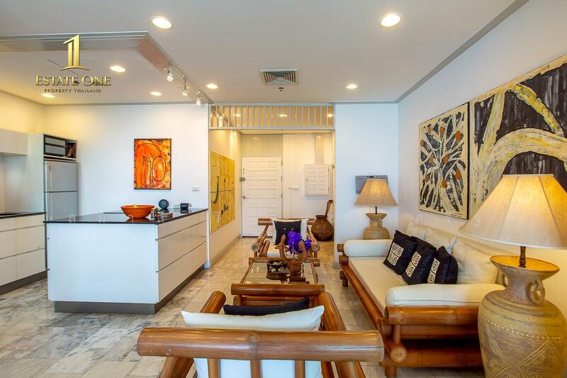 The unit features 2 bedrooms and 2 bathrooms with a generous living area, ideal for both full-time living and investment in a prime Hua Hin location, close to major amenities and hospitals.