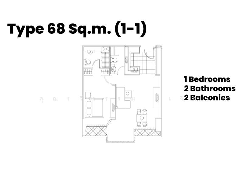 - 1 ห้องนอน , 2 ห้องน้ำ , 68 ตร.ม.