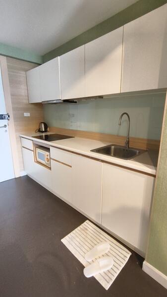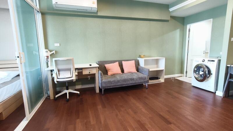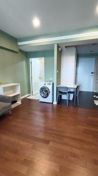 เมื่อเปิดประตูเข้ามา จะเป็นโซนซักรีดหรือพื้นที่เล็กๆ ก่อนถึงตัวห้อง เพิ่มความเป็นสัดส่วนและความเป็นส่วนตัว