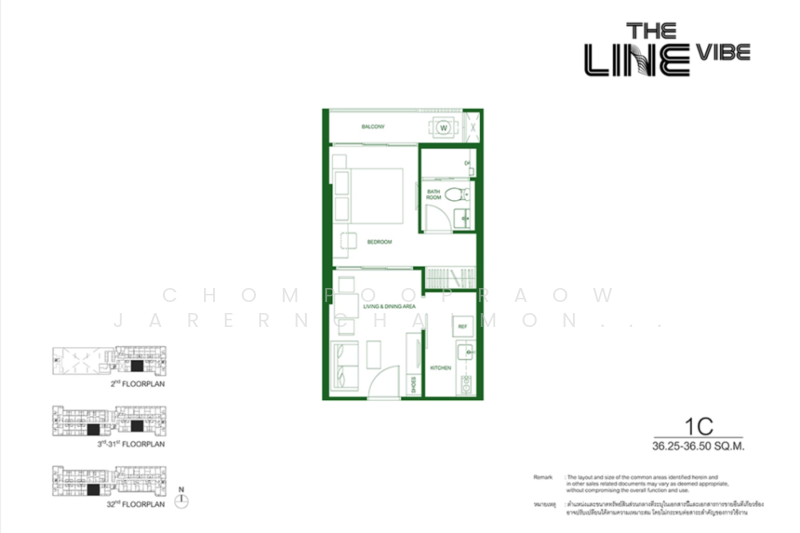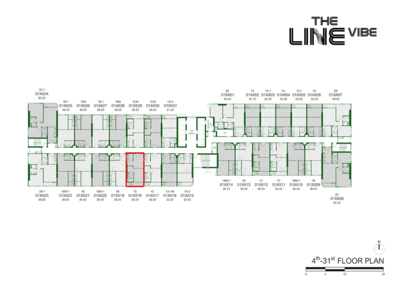 ขาย คอนโด 1 ห้องนอน 1 ห้องน้ำ ขนาด 36.25 ตารางเมตร ชั้น 11-20, โครงการ เดอะ ไลน์ ไวบ์ พหลโยธิน ซึ่งตั้งอยู่ในเขตจตุจักร ใกล้ BTS