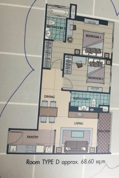 ให้เช่า/ขาย คอนโดตกแต่งพร้อมอยู่ 2 ห้องนอน 2 ห้องน้ำ ขนาด 68.02 ตารางเมตร ชั้น 2, โครงการ เดอะ ลิงค์ สุขุมวิท 50