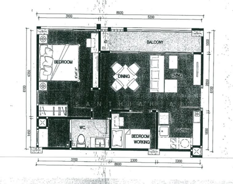 พื้นที่ใช้สอย 49.95 ตร.ม.