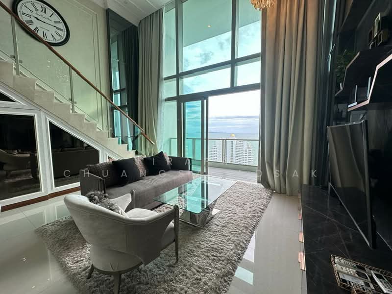 ให้เช่า คอนโดตกแต่งพร้อมอยู่ 3 ห้องนอน 2 ห้องน้ำ ขนาด 205 ตารางเมตร ชั้น 45-46, โครงการ เดอะ ริเวียร่า จอมเทียน