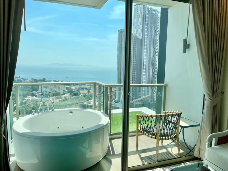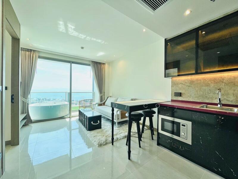 คอนโด 1 ห้องนอน 1 ห้องน้ำ ขนาด 39.42 ตร.ม. ตั้งอยู่บนชั้น 23 มอบวิวทะเลสุดตระการตา ภายในห้องตกแต่งครบพร้อมเข้าอยู่ มาพร้อมกับครัวบิวท์อินสไตล์ยุโรป ที่มีเตาไฟฟ้า เครื่องซักผ้า และตู้เย็น พื้นที่นั่งเล่นประกอบด้วยโซฟานุ่มสบายและทีวี ส่วนห้องนอนมีตู้เสื้อผ้าบิวท์อินให้พื้นที่จัดเก็บของอย่างเพียงพอ ไฮไลท์ของห้องนี้คือจากุซซี่ส่วนตัวบนระเบียง ให้คุณเพลิดเพลินกับวิวทะเลที่สวยงาม พร้อมมอบความหรูหราและความผ่อนคลายที่ลงตัว