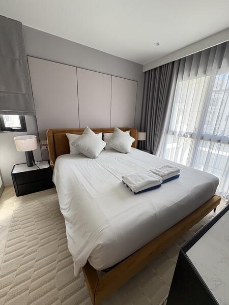 ห้อง ตกแต่งครบ พร้อมเข้าอยู่ พื้นที่นั่งเล่นมีโซฟา ทีวี 55 นิ้ว และโต๊ะกลาง ครัวจัดเต็มด้วยอุปกรณ์ครบครัน ได้แก่ เครื่องล้างจาน เตาอบ เครื่องชงกาแฟ ตู้เย็น ไมโครเวฟ กาต้มน้ำ เครื่องปั่น ชุดช้อนส้อมและแก้วครบชุด โต๊ะทานอาหาร 4 ที่นั่ง และ เครื่องซักผ้าที่ระเบียง