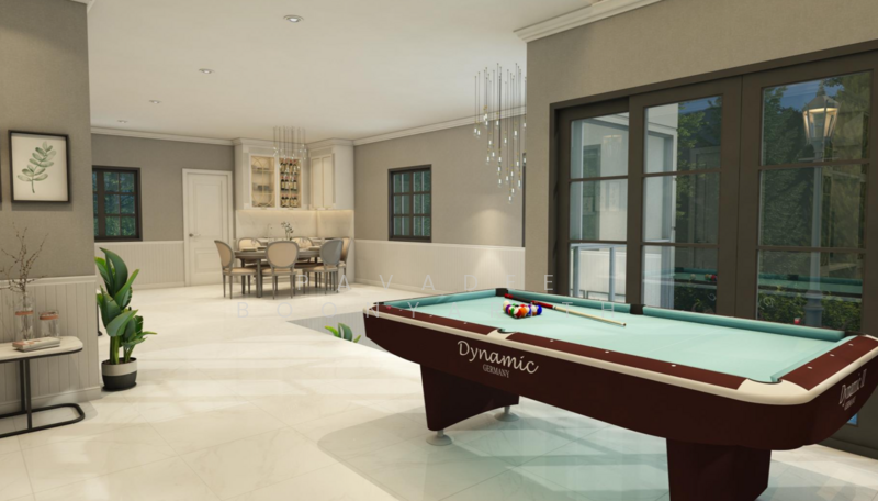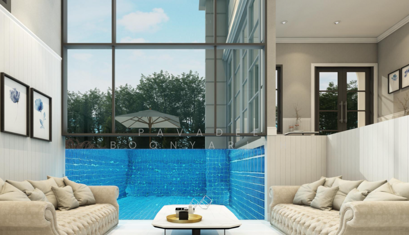 The Tnergy Elegance Pool Villa stands in the heart of Hua Hin, just 2.8 kilometers away from the Bluport Department Store. It offers two distinctive models: a one-story villa with a rooftop and a two-story villa with a rooftop, boasting 3 to 5 bedrooms and adorned in a European Classic style. One of the villa's unique features is the striking Aquarium Swimming Pool. The underwater view visible through glass from the guest room inside the house.
