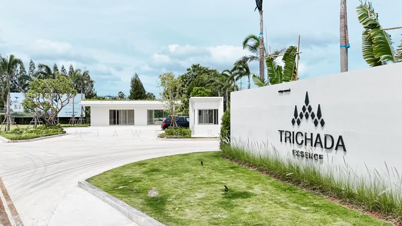 ตรีชฎา เอสเซนส์ (Trichada Essence) โครงการบ้านเดี่ยวสไตล์พูลวิลล่า 1 ชั้น ใจกลางอำเภอถลาง ชานเมืองภูเก็ต ใกล้กับหาดบางเทา ประมาณ 6.9 กิโลเมตร และอยู่ห่างจากสนามบินภูเก็ตเพียง 12.8 กิโลเมตร เป็นผลงานการพัฒนาโครงการจากบริษัท บางเทา พาราไดซ์ คอนสตรัคชั่น จำกัดโครงการนี้มีจำนวน 25 ยูนิต มีเนื้อที่บ้านตั้งแต่ 92.50-198.25 ตารางวา พื้นที่ใช้สอยตั้งแต่ 221-408 ตารางเมตร ขนาด 3-4 ห้องนอน 3 ห้องน้ำ พร้อมสิ่งอำนวยความสะดวก เช่น ห้องออกกำลังกาย ลานจอดรถ และระบบรักษาความปลอดภัยได้มาตรฐาน เป็นต้น โดยโครงการนี้คาดว่าจะก่อสร้างแล้วเสร็จในปี 2568 และมีลักษณะการถือครองแบบขายขาด ตัวโครงการตั้งอยู่ที่ตำบลเทพกระษัตรี โดยในรัศมีไม่เกิน 19 กิโลเมตรรอบโครงการ จะพบสถานที่น่าสนใจ เช่น โลตัส ถลาง , แม็คโคร ถลาง, โฮมโปร ภูเก็ต ถลาง, โรงเรียนอนุบาลถลางวิทยา, โรงเรียนนานาชาติยูดับเบิลยูซี ประเทศไทย, โรงเรียนนานาชาติฟินน์เวย์ ภูเก็ต, โรงพยาบาลถลาง, โรงพยาบาลกรุงเทพภูเก็ต และโรงพยาบาลวชิระภูเก็ต เป็นต้น การเดินทางเข้าออกโครงการ สามารถใช้ถนนบ้านเหรียง ห่างจากโครงการประมาณ 400 เมตร, ถนนเทพกระษัตรี ห่างจากโครงการประมาณ 2 กิโลเมตร, ถนนนาใน ห่างจากโครงการประมาณ 3 กิโลเมตร และถนนศรีสุนทร ห่างจากโครงการประมาณ 7.4 กิโลเมตรได้ และจะพบถนนเฉลิมพระเกียรติ (บายพาส) ในระยะทางประมาณ 14.3 กิโลเมตรให้ใช้บริการด้วย ตรีชฎา เอสเซนส์ (Trichada Essence) ออกแบบบ้านสไตล์ไทยโมเดิร์น เป็นบ้านดีไซน์เรียบง่าย พร้อมแฝงไปด้วยกลิ่นอายความเป็นไทยซึ่งเป็นเอกลักษณ์ของตัวบ้าน นั่นก็คือ การใช้หลังคาทรงปั้นหยาขนาดใหญ่บริเวณกลางตัวบ้าน ทำให้บ้านดูมีมิติ คุมโทนด้วยสีขาวและสีน้ำตาล ให้ความรู้สึกอบอุ่น มีความกลมกลืนกับธรรมชาติ ตกแต่งรอบตัวบ้านด้วยสวนหย่อมสีเขียว พร้อมด้วยสระว่ายน้ำส่วนตัว พื้นที่อาบน้ำกลางแจ้ง และระเบียงสำหรับพักผ่อนให้ทุกยูนิต ภายในบ้านให้บรรยากาศโปร่งโล่ง สบายตา บริเวณห้องรับแขกและห้องรับประทานอาหารจะอยู่ตรงจุดเดียวกับหลังคาทรงปั้นหยา ทำให้พื้นที่บริเวณนั้นจะมีความสูงฝ้าเพดานมากกว่าจุดอื่นในบ้าน พร้อมตกแต่งงานฝ้าด้วยไม้เป็นซี่ ๆ ส่งให้ภายในบ้านดูมีลูกเล่นที่น่าสนใจ ตกแต่งด้วยกระจกบานใหญ่รอบตัวบ้าน เพื่อเปิดรับแสงธรรมชาติได้อย่างเต็มที่ มีการจัดสรรพื้นที่ใช้สอยอย่างเป็นสัดส่วน ทำให้เหลือพื้นที่อย่างกว้างขวาง ตอบโจทย์ทุกการใช้งานของผู้อยู่อาศัย โดยแบบบ้านในโครงการมีทั้งหมด 2 แบบด้วยกัน คือ 3 Bedrooms Villa พื้นที่ใช้สอย 221 ตารางเมตร ขนาด 3 ห้องนอน 3 ห้องน้ำ 1 ห้องรับแขก 1 พื้นที่รับป