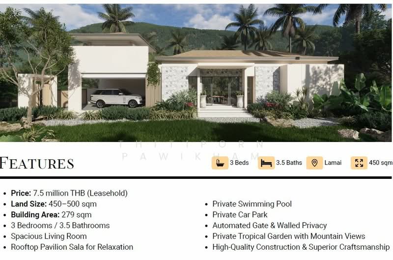 ขาย วิลล่า 3 ห้องนอน 4 ห้องน้ำ ขนาด 279 ตารางเมตร ซึ่งตั้งอยู่ในเขตเกาะสมุย ติดต่อเราเพื่อนัดหมายเข้าชมรายการที่คุณต้องการ