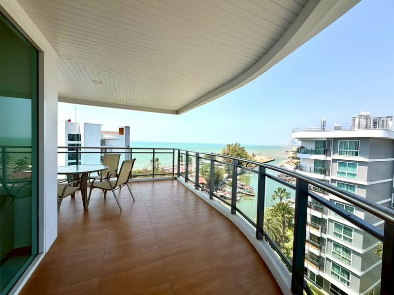 This 2-bedroom, 1-bathroom corner unit at Whale Marina in Jomtien sits on the top floor, giving you incredible open views of the sea and surrounding coastline. With its wrap-around balcony, you get front-row seats to the ocean from sunrise to sunset.