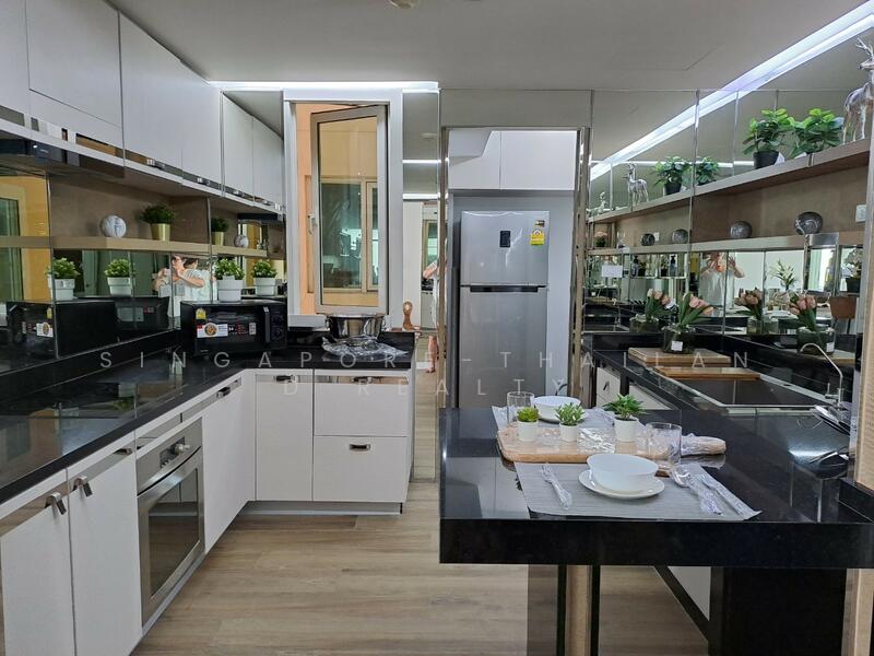ยูนิตนี้ตกแต่งด้วยพื้นไม้เนื้อแข็งและหินอ่อน