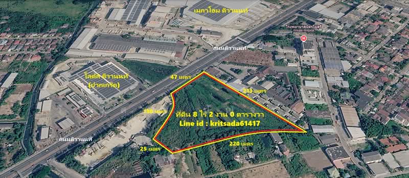 ขายที่ดินถนนติวานนท์ เนื้อที่ 8ไร่ 2งาน